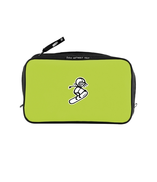 UAX Unisex sizes XL cosmetic bag with printing and pocket with design 1243 SNOWBOARD in color GREEN LIMET
