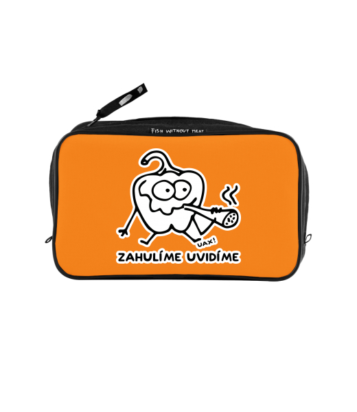 UAX Unisex sizes XL cosmetic bag with printing and pocket with design 1246 ZHULÍME UVIDÍME in color SIGNAL ORANGE