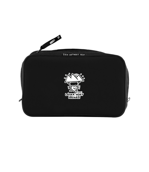 UAX Unisex sizes XL cosmetic bag with printing and pocket with design 1264 LÁSKA HORY PŘENÁŠÍ in color BLACK