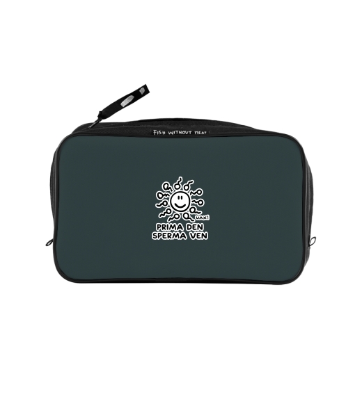 UAX Unisex sizes XL cosmetic bag with printing and pocket with design 1265 PRIMA DEN SPERMA VEN in color GREY INK