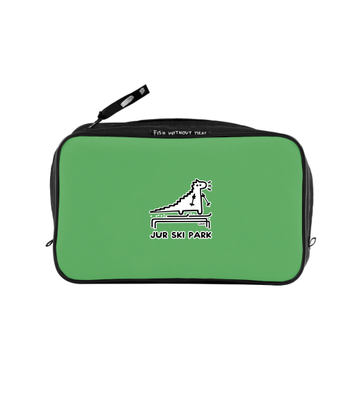 UAX Unisex sizes XL cosmetic bag with printing and pocket with design 1277 JUR SKI PARK in color BRIGHT GREEN