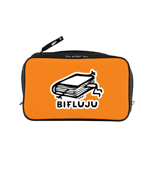 UAX Unisex sizes XL cosmetic bag with printing and pocket with design 1281 BIFLUJU in color SIGNAL ORANGE