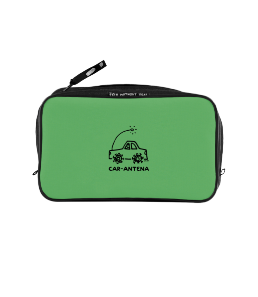 UAX Unisex sizes XL cosmetic bag with printing and pocket with design 1284 CAR-ANTENA in color BRIGHT GREEN