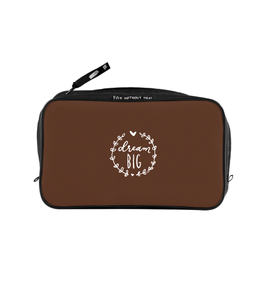 UAX Unisex sizes XL cosmetic bag with printing and pocket with design 1286 DREAM BIG in color BROWN SUGAR