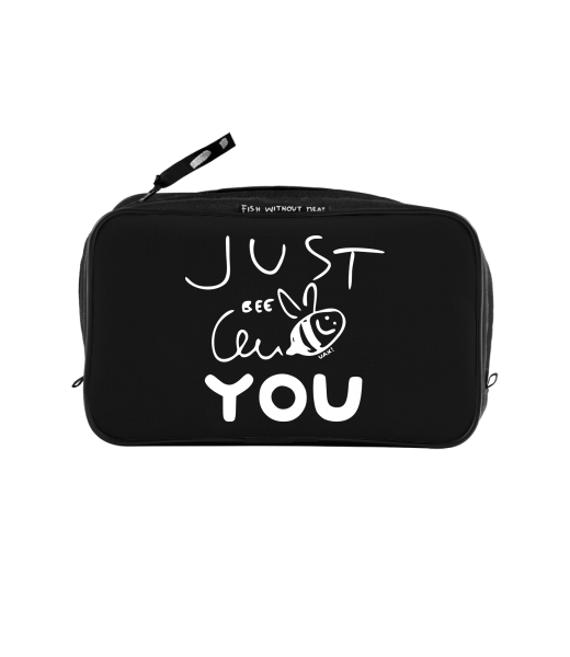 UAX Unisex sizes XL cosmetic bag with printing and pocket with design 1294 JUST BEE YOU in color BLACK