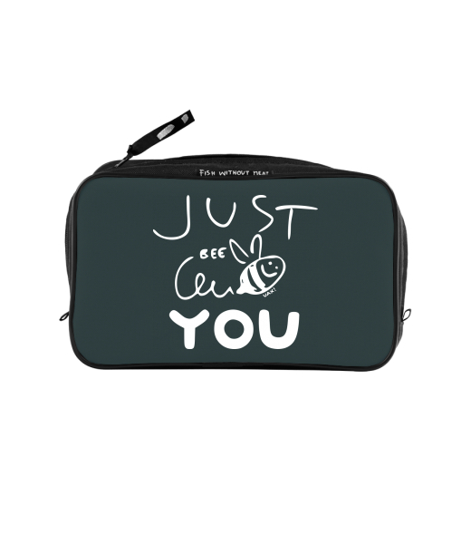 UAX Unisex sizes XL cosmetic bag with printing and pocket with design 1294 JUST BEE YOU in color GREY INK