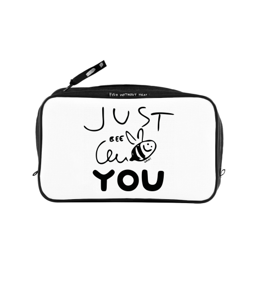 UAX Unisex sizes XL cosmetic bag with printing and pocket with design 1294 JUST BEE YOU in color WHITE