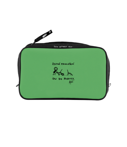UAX Unisex sizes XL cosmetic bag with printing and pocket with design 1303 ČESTNÉ PROHLÁŠENÍ IDU DO ROBOTY in color BRIGHT GREEN
