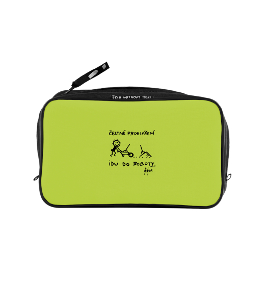 UAX Unisex sizes XL cosmetic bag with printing and pocket with design 1303 ČESTNÉ PROHLÁŠENÍ IDU DO ROBOTY in color GREEN LIMET