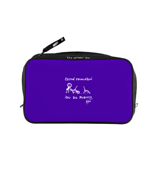 UAX Unisex sizes XL cosmetic bag with printing and pocket with design 1303 ČESTNÉ PROHLÁŠENÍ IDU DO ROBOTY in color VIOLET