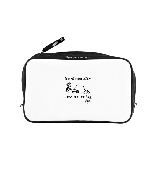 UAX Unisex sizes XL cosmetic bag with printing and pocket with design 1304 ČESTNÉ PROHLÁŠENÍ JDU DO PRÁCE in color WHITE
