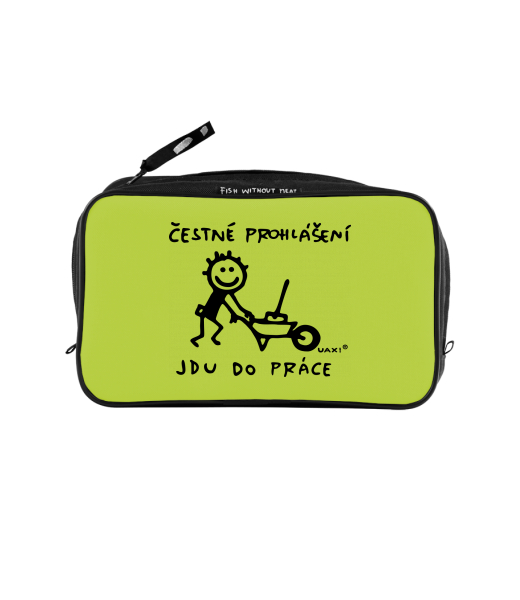 UAX Unisex sizes XL cosmetic bag with printing and pocket with design 1305 ČESTNÉ PROHLÁŠENÍ JDU DO PRÁCE 2 in color GREEN LIMET