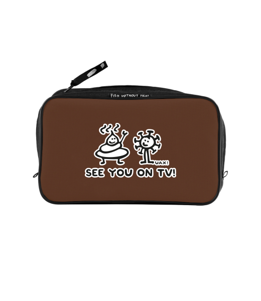 UAX Unisex sizes XL cosmetic bag with printing and pocket with design 1306 SEE YOU ON TV in color BROWN SUGAR