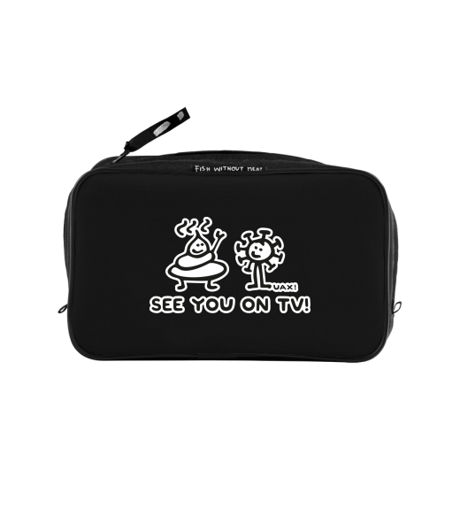 UAX Unisex sizes XL cosmetic bag with printing and pocket with design 1306 SEE YOU ON TV in color BLACK
