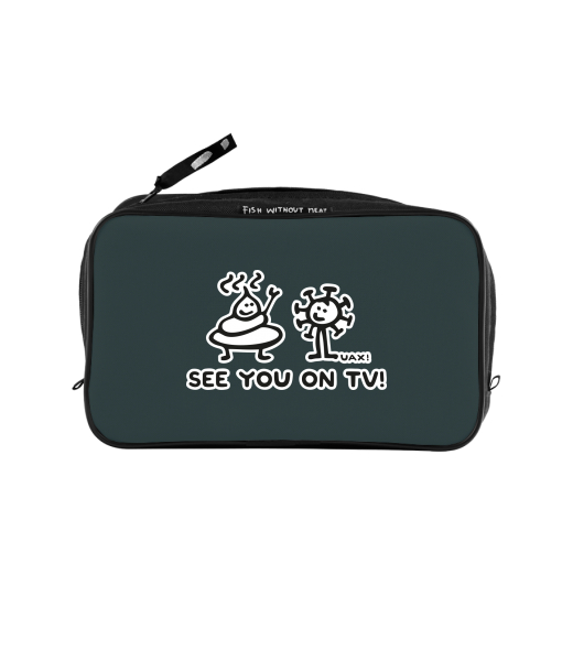UAX Unisex sizes XL cosmetic bag with printing and pocket with design 1306 SEE YOU ON TV in color GREY INK