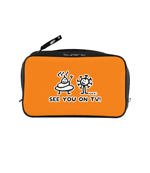 UAX Unisex sizes XL cosmetic bag with printing and pocket with design 1306 SEE YOU ON TV in color SIGNAL ORANGE