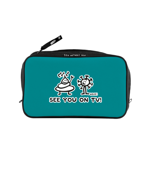 UAX Unisex sizes XL cosmetic bag with printing and pocket with design 1306 SEE YOU ON TV in color TURQUOISE