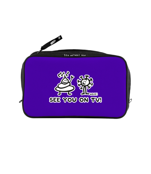 UAX Unisex sizes XL cosmetic bag with printing and pocket with design 1306 SEE YOU ON TV in color VIOLET