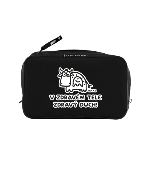 UAX Unisex sizes XL cosmetic bag with printing and pocket with design 1309 V ZDRAVÉM TELE ZDRAVÝ DUCH in color BLACK