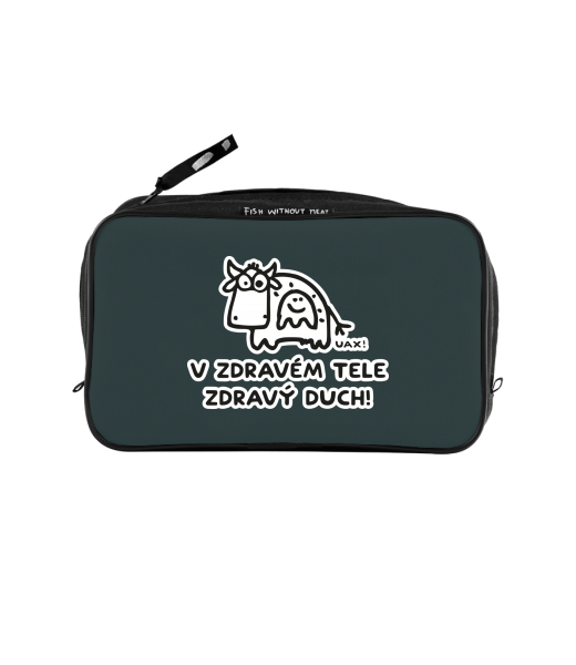 UAX Unisex sizes XL cosmetic bag with printing and pocket with design 1309 V ZDRAVÉM TELE ZDRAVÝ DUCH in color GREY INK