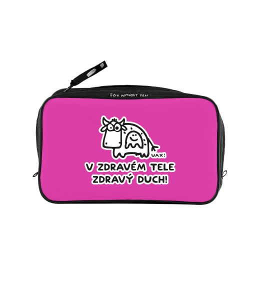 UAX Unisex sizes XL cosmetic bag with printing and pocket with design 1309 V ZDRAVÉM TELE ZDRAVÝ DUCH in color INDIAN LILA