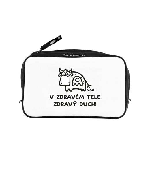 UAX Unisex sizes XL cosmetic bag with printing and pocket with design 1309 V ZDRAVÉM TELE ZDRAVÝ DUCH in color WHITE