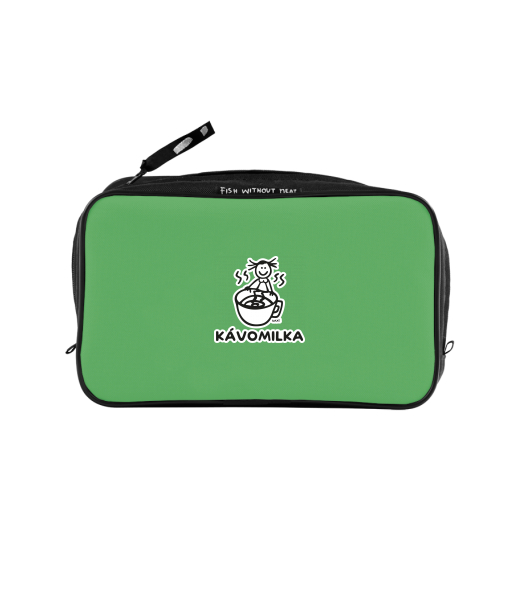 UAX Unisex sizes XL cosmetic bag with printing and pocket with design 1311 KÁVOMILKA in color BRIGHT GREEN