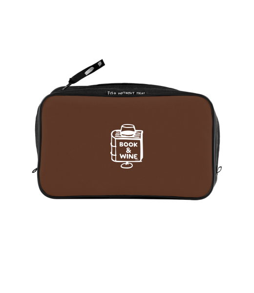 UAX Unisex sizes XL cosmetic bag with printing and pocket with design 1322 BOOK AND WINE in color BROWN SUGAR
