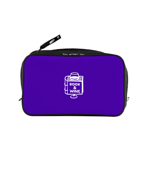 UAX Unisex sizes XL cosmetic bag with printing and pocket with design 1322 BOOK AND WINE in color VIOLET