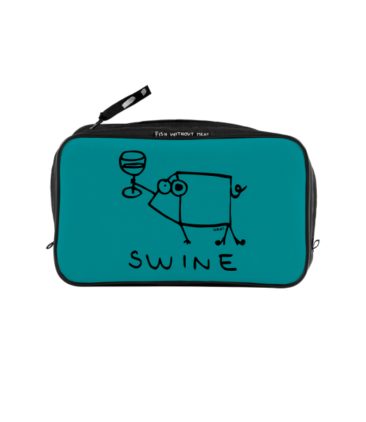 UAX Unisex sizes XL cosmetic bag with printing and pocket with design 1323 SWINE in color TURQUOISE
