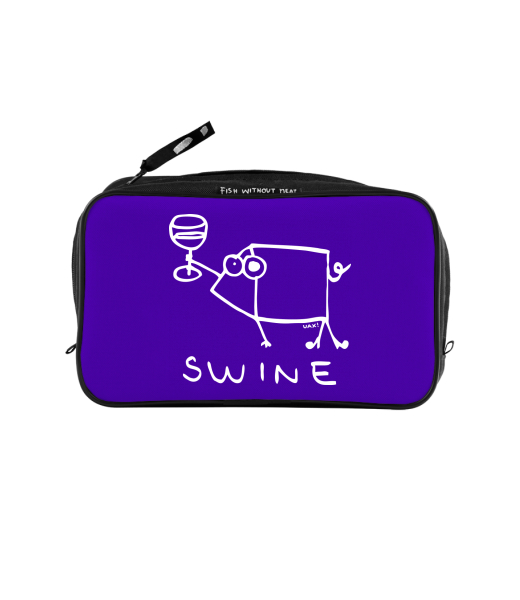 UAX Unisex sizes XL cosmetic bag with printing and pocket with design 1323 SWINE in color VIOLET