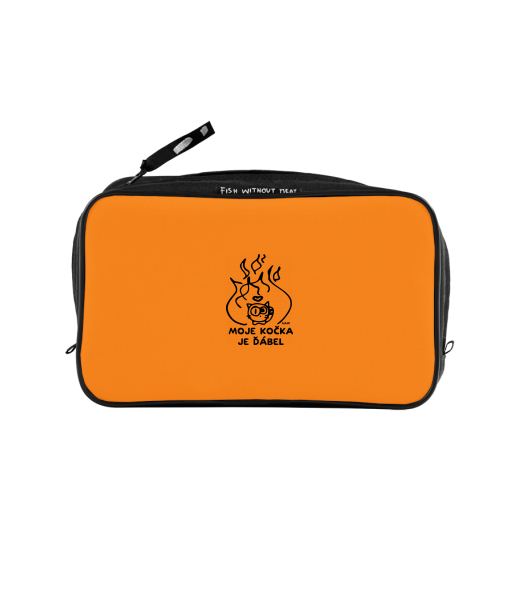 UAX Unisex sizes XL cosmetic bag with printing and pocket with design 1326 MOJE KOČKA JE ĎÁBEL in color SIGNAL ORANGE