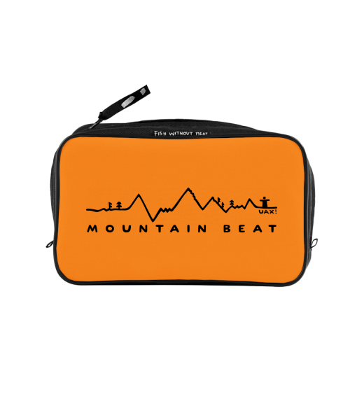 UAX Unisex sizes XL cosmetic bag with printing and pocket with design 1327 MOUNTAIN BEAT in color SIGNAL ORANGE