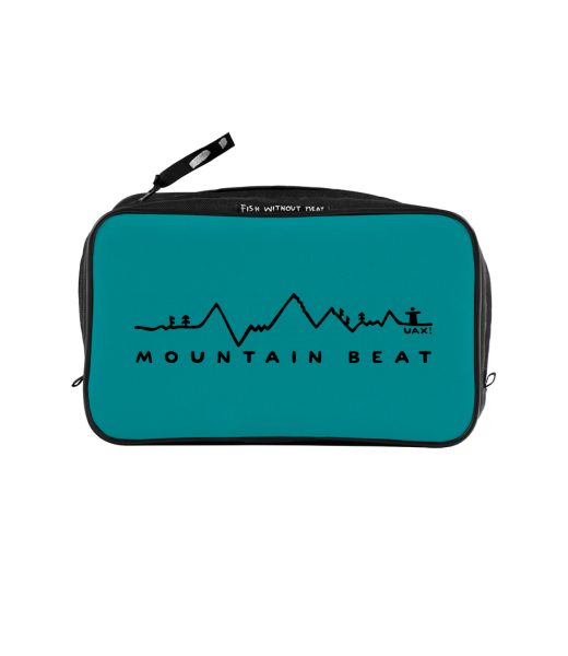 UAX Unisex sizes XL cosmetic bag with printing and pocket with design 1327 MOUNTAIN BEAT in color TURQUOISE