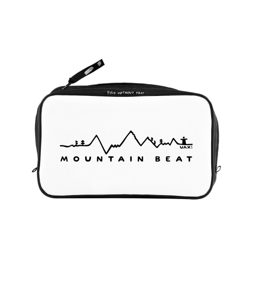 UAX Unisex sizes XL cosmetic bag with printing and pocket with design 1327 MOUNTAIN BEAT in color WHITE