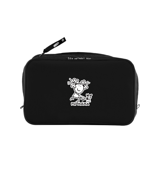 UAX Unisex sizes XL cosmetic bag with printing and pocket with design 1330 PSÍ MÁMA in color BLACK