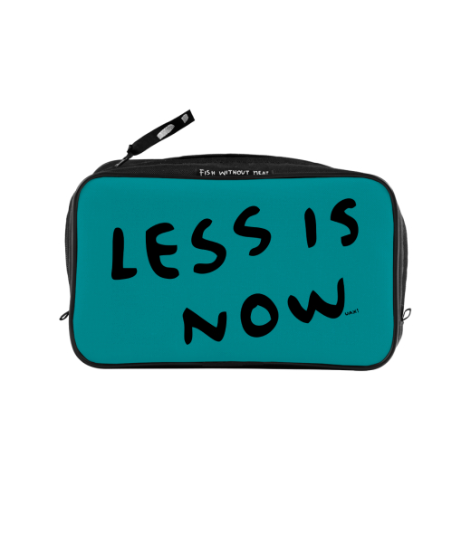 UAX Unisex sizes XL cosmetic bag with printing and pocket with design 1333 LESS IS NOW in color TURQUOISE