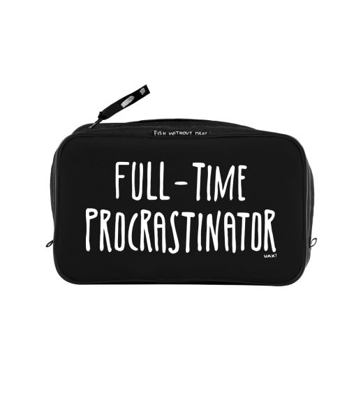 UAX Unisex sizes XL cosmetic bag with printing and pocket with design 1334 FULL-TIME PROCRASTINATOR in color BLACK
