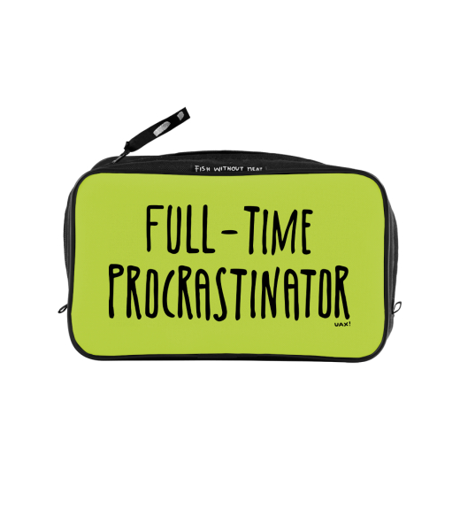 UAX Unisex sizes XL cosmetic bag with printing and pocket with design 1334 FULL-TIME PROCRASTINATOR in color GREEN LIMET