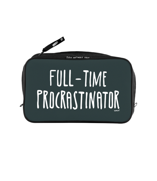 UAX Unisex sizes XL cosmetic bag with printing and pocket with design 1334 FULL-TIME PROCRASTINATOR in color GREY INK