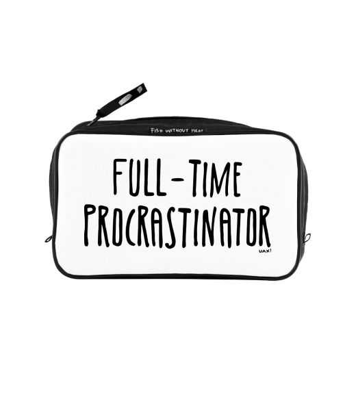 UAX Unisex sizes XL cosmetic bag with printing and pocket with design 1334 FULL-TIME PROCRASTINATOR in color WHITE
