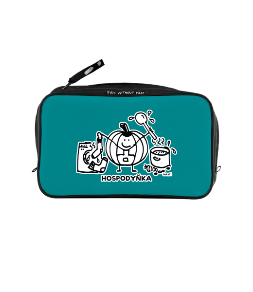 UAX Unisex sizes XL cosmetic bag with printing and pocket with design 1335 HOSPODYŇKA in color TURQUOISE