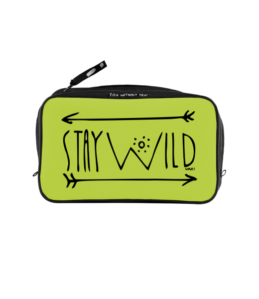 UAX Unisex sizes XL cosmetic bag with printing and pocket with design 1338 STAY WILD 2 in color GREEN LIMET