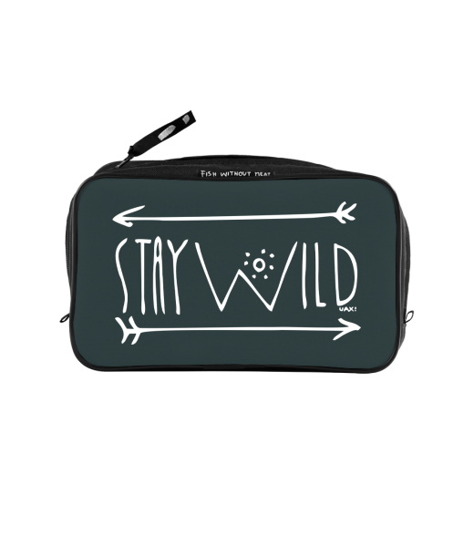 UAX Unisex sizes XL cosmetic bag with printing and pocket with design 1338 STAY WILD 2 in color GREY INK