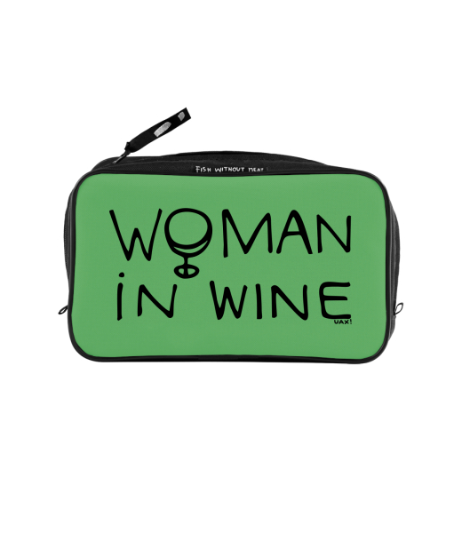 UAX Unisex sizes XL cosmetic bag with printing and pocket with design 1346 WOMAN IN WINE 1 in color BRIGHT GREEN