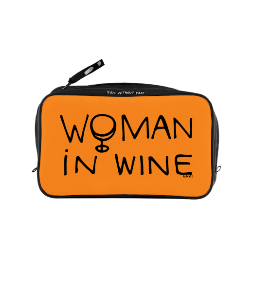 UAX Unisex sizes XL cosmetic bag with printing and pocket with design 1346 WOMAN IN WINE 1 in color SIGNAL ORANGE