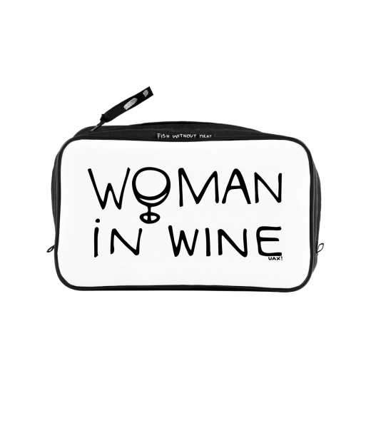 UAX Unisex sizes XL cosmetic bag with printing and pocket with design 1346 WOMAN IN WINE 1 in color WHITE