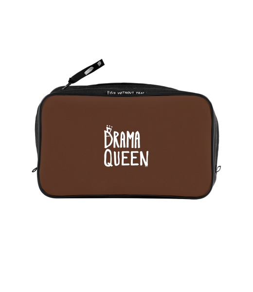 UAX Unisex sizes XL cosmetic bag with printing and pocket with design 1350 DRAMA QUEEN in color BROWN SUGAR