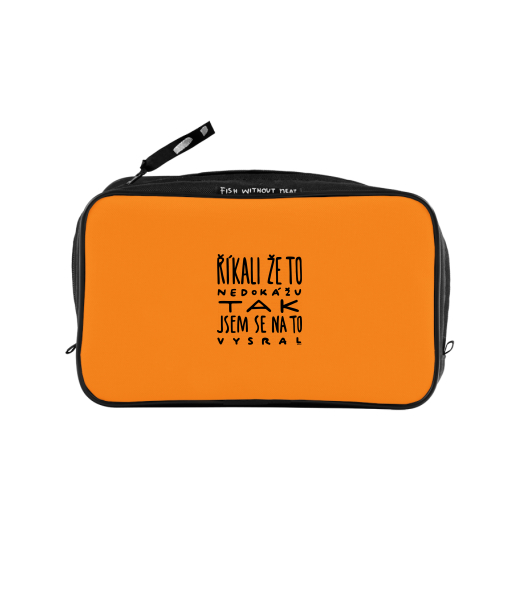UAX Unisex sizes XL cosmetic bag with printing and pocket with design 1366 ŘÍKALI ŽE TO NEDOKÁŽU TAK JSEM SE NA TO VYSRAL in color SIGNAL ORANGE