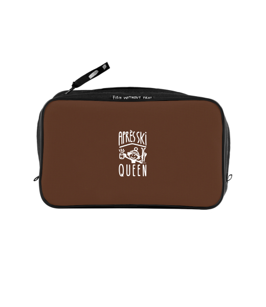 UAX Unisex sizes XL cosmetic bag with printing and pocket with design 1371 APRÉS SKI QUEEN in color BROWN SUGAR
